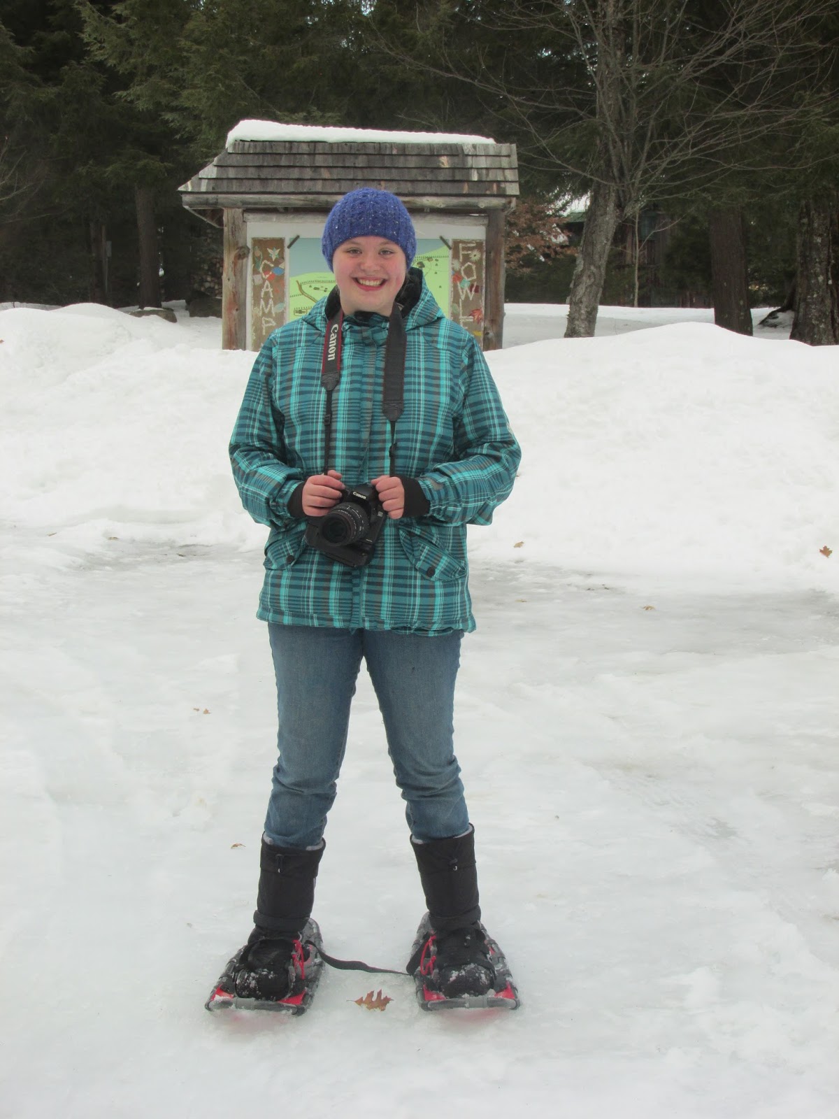 Maddie is all set for a day or two at Camp. We dropped her off in time for dinner this afternoon. Before we left we all walked (snow shoed!) down to the main camp area so Maddie could take some winter photos with her big camera.